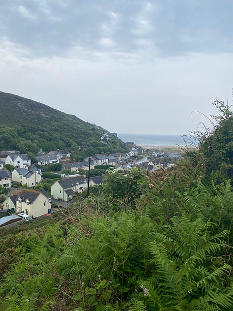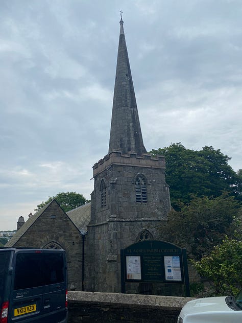 Pierwszy odcinek wczorajszej jazdy to było jeszcze ignorowanie tras z cyclelejog.com, ale w Perranporth dołączyłem i dalej pojechałem już po wyznaczonej trasie. Ona jest podzielona na 28 odcinków – to więcej niż mam dni, więc żeby trzymać się czasu, muszę robić mniej więcej cztery odcinki w trzy dni. Na razie jest dobrze. Pierwszego dnia pokonałem jeden i kawałek drugiego; wczoraj – resztę drugiego i większość trzeciego. Teraz kończę popas w Bodmin, gdzie zaczyna się czwarty odcinek, i na spokojnie powinienem dojechać dziś do końca; nawet napocząć piąty.